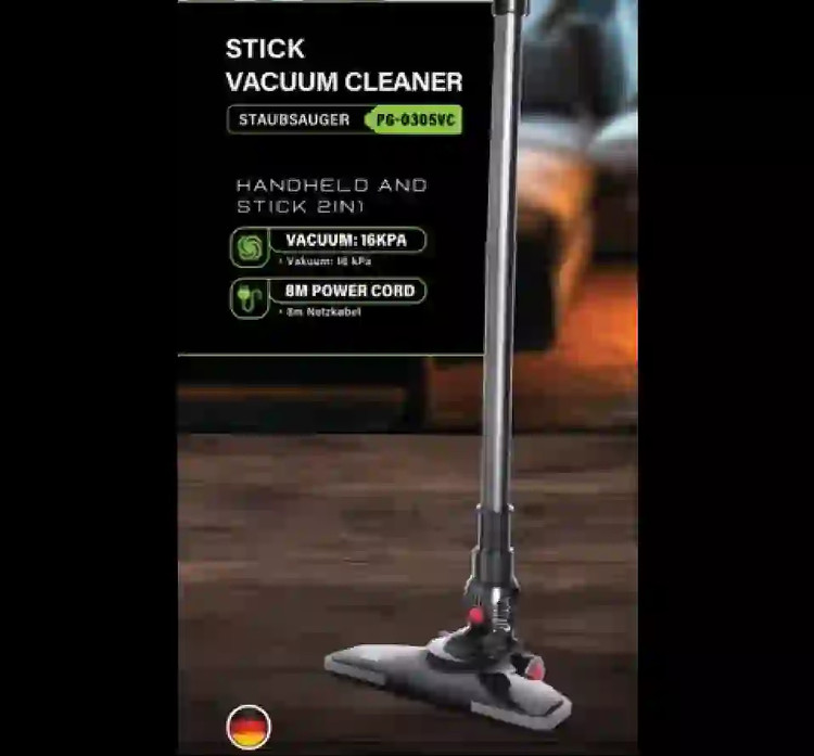 🧹 جارو عصایی پاول PG‑0305VC با توان موتور تقریبی ۱۰۰۰ وات، برای مصارف روزمره درخانه بسیار مناسب است. این جارو سبک و جمعوجور طراحی شده تا راحت برداشته شود و بدون نیاز به خم شدن، سطح را تمیز کند .